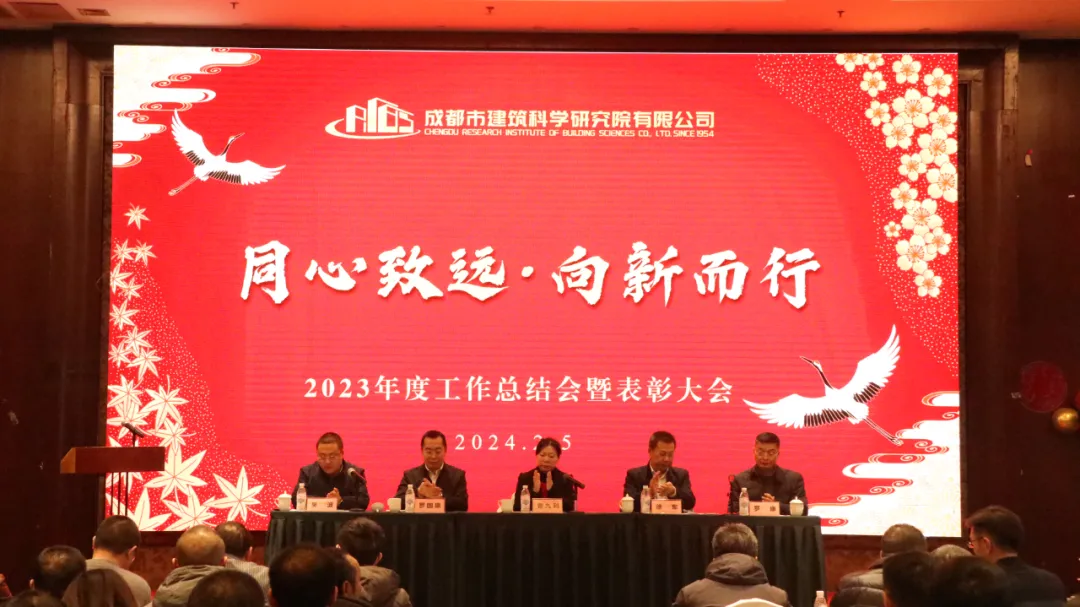2 月 5 日,成都市建筑科学研究院有限公司召开了 2023 年度工作总结暨先进表彰大会。会议回顾总结了公司 2023 年工作成绩,谋划部署了 2024 年重点工作,对 2023 年先进个人、先进集体及特别奖获奖者进行了表彰。集团党委书记、董事长曾九利,集团副总经理徐军,以及公司领导班子和全体干部职工参加会议。